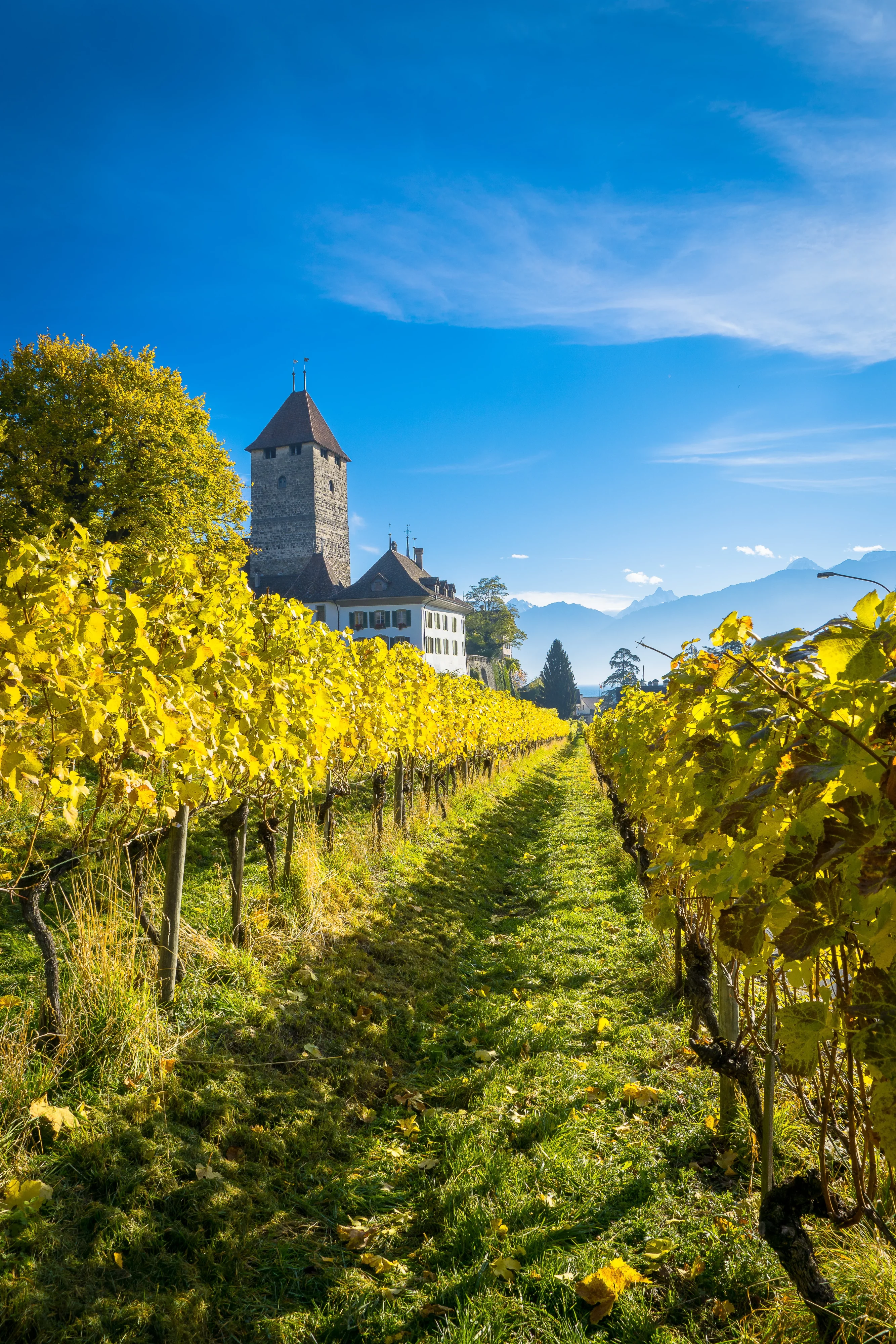 Vibration des moteurs. Nuages de vapeur d’eau le long de la coque fraîchement repeinte. En ce matin d’hiver, flotte dans l’air l’effervescence des départs. Le bateau amarré au port de Spiez, que l’on peut observer en contrebas depuis le domaine viticole situé en altitude (550 mètres) et à deux pas du château, ne va pas tarder à accueillir ses passagers en goguette dotés d’appareils photo à l’épaule.