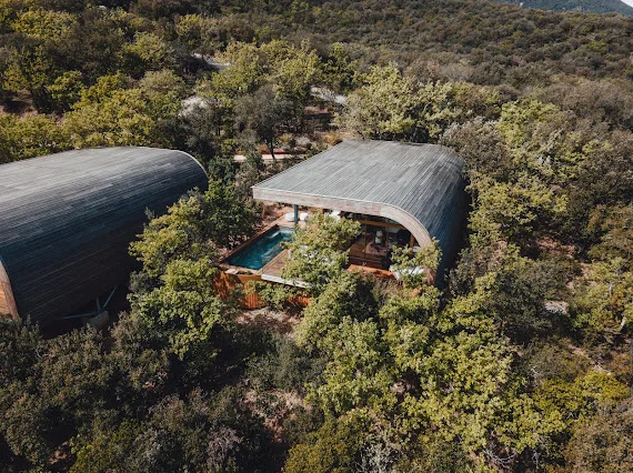 Beauté intemporelle hors des radars. Au pied du pic de Vissou, dans l’Hérault, Fabien Morcel et Gilles Pascal offrent l’occasion de se précipiter tête la première dans une paysage spectaculaire agrippée à flanc de colline, de quoi séduire les amoureux de biodiversité. À perte de vue, une terre bénie aux airs de grand potager nourricier; vignobles, garrigues et chênes centenaires dont on perçoit les senteurs depuis la piscine à débordement qui met le monde à vos pieds.