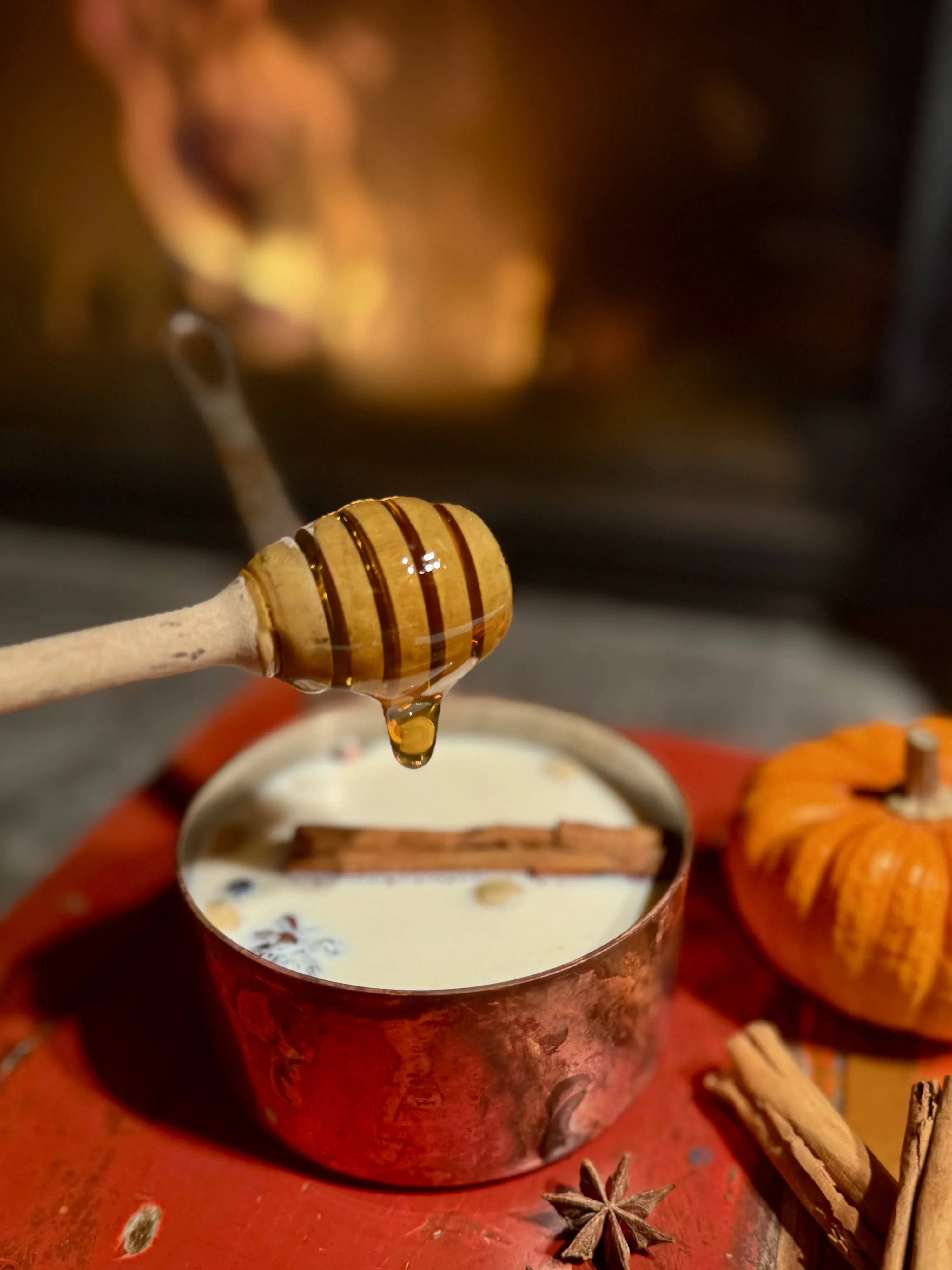 Chauffez doucement le lait sans le faire bouillir et ajoutez les épices. Laissez infuser à feu très doux pendant environ une heure pour que le lait s’imprègne bien des saveurs des épices.