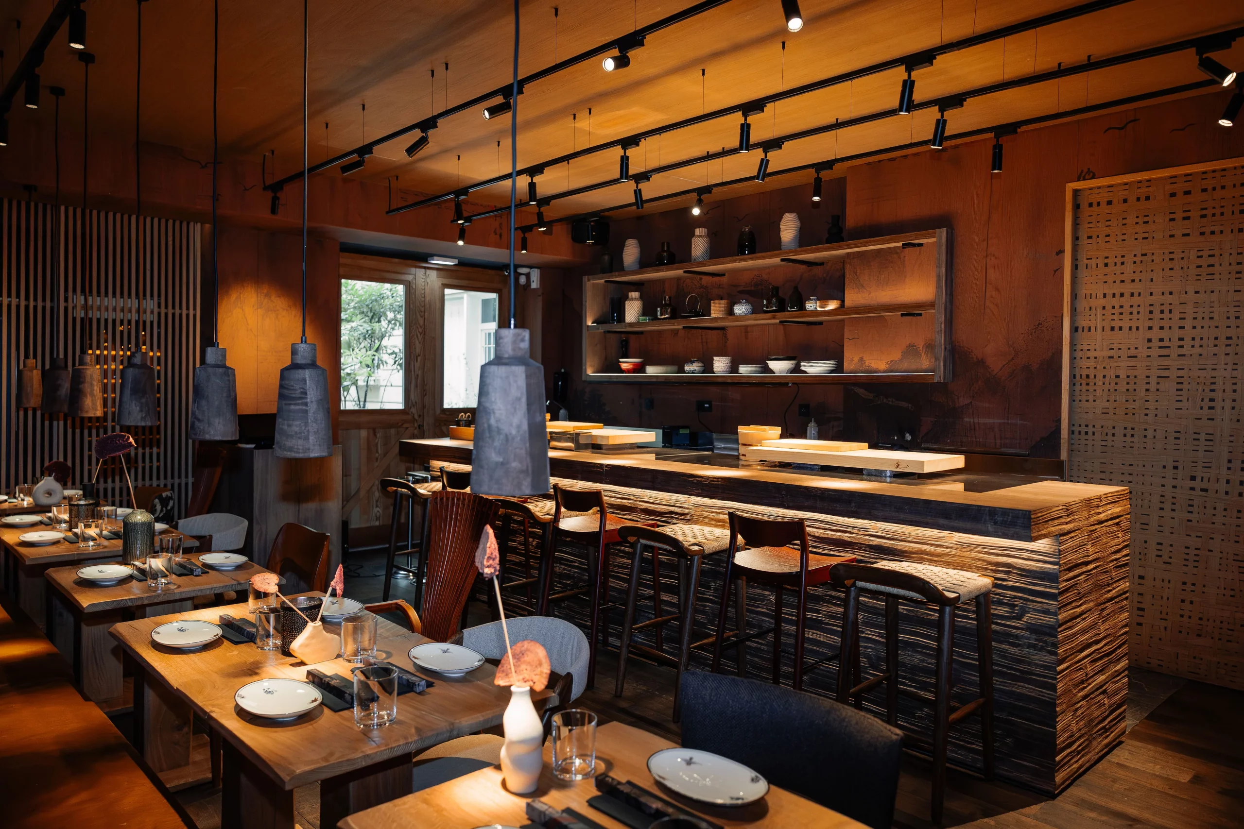 Tout de bois sombre, le décor feutré catapulte les gourmets dans un moment hors du temps, loin de l’émulation parisienne et de ses impératifs. L’adresse tire un service soigné et des assiettes décorées de bleu indigo qui rappellent les lumières de l’aube. On y apprécie le calme olympien qui offre à la symphonie nippone des plats une délicatesse profondément incarnée. Tout sonne juste. On se laisse emporter sans résistance.