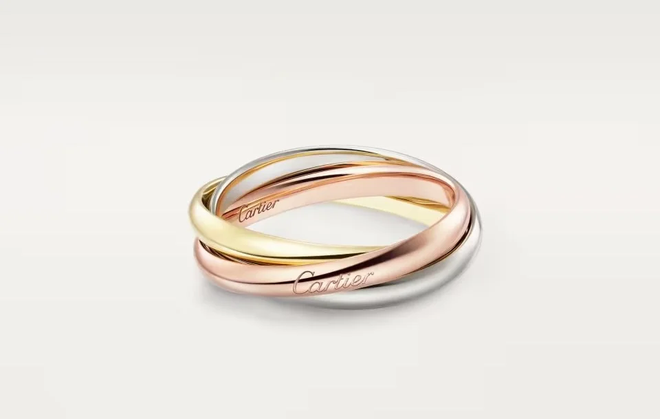 Commercialisée dans les années ’70, baptisée « Trinity » en 1998, l’anneau aux trois couleurs est un véritable signe d’engagement entre deux êtres, un message d’amour universel, dont le design est aussi bien apprécié par la gente masculine que féminine.