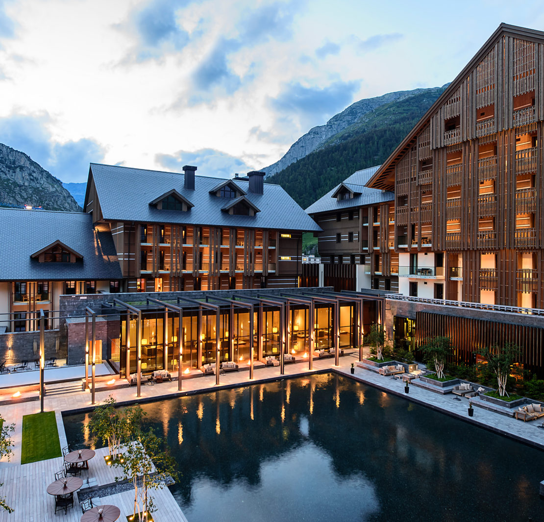 Entouré d’une nature somptueuse et avec pour écrin les Alpes suisses qui déploient leur beauté en toute saison, The Chedi Andermatt s’intègre harmonieusement dans le paysage de chalets de ski traditionnels d’Andermatt, village de la vallée d’Ursern au charme intemporel. Conçu par l’architecte de renom Jean-Michel Gathy du bureau Denniston Architects, l’hôtel cinq étoiles de luxe ouvert en 2013 allie à la perfection le chic suisse alpin authentique et le style asiatique.