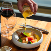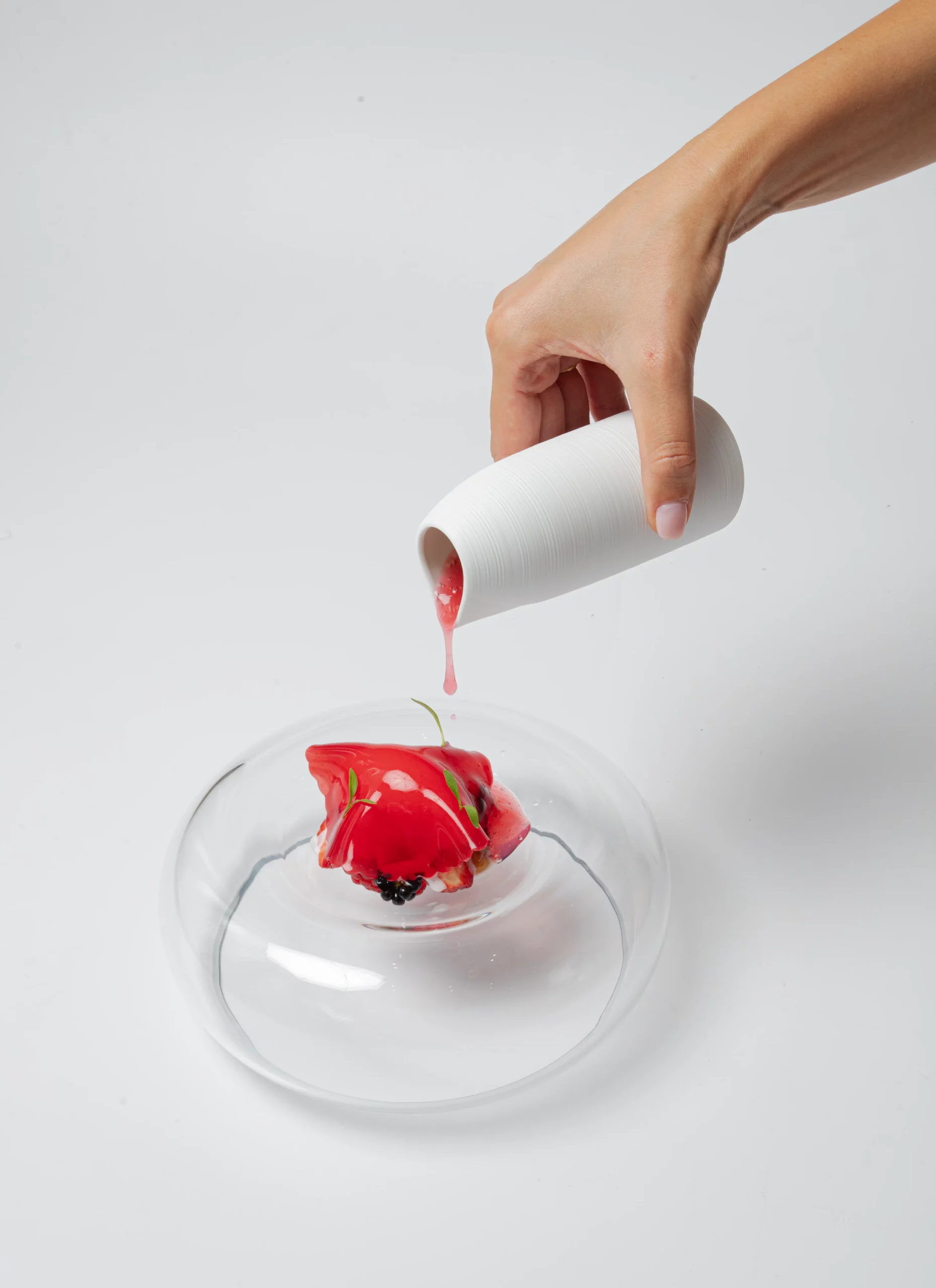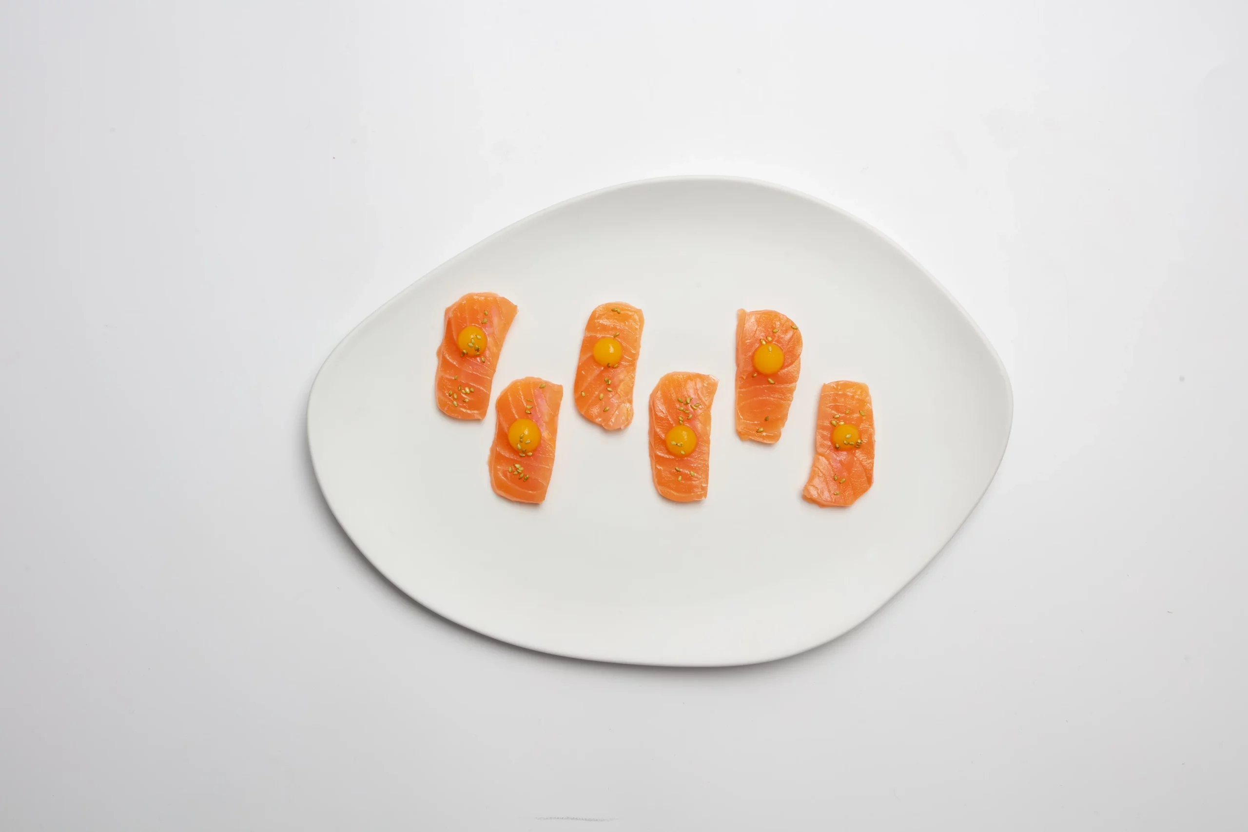Ce jour là, au menu, qui change toutes les deux, trois semaines selon ses envies; tartare de bœuf agrémenté de tobiko (œufs de poisson volant) surmonté d’un nuage au parmesan affiné, paccheri all’arrabbiata, ceviche de dorade, sushis comme à Kyoto et évidemment des desserts qui rappellent des sculptures qu’on n’ose à peine effleurer du dos de la cuillère.